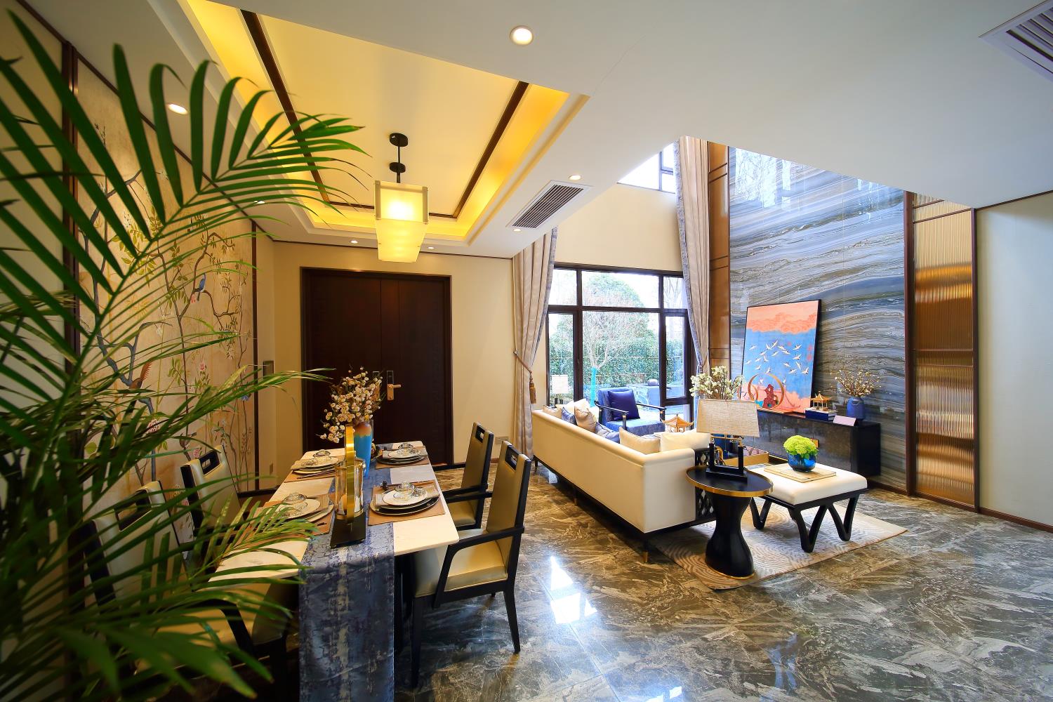 修建方面,,,高层是现代简约风,,,联排别墅则接纳了新中式修建气概,,,大气沉稳,,,极具中国古代文化特色,,,暖色调为主的立面辅以深褐色质感的外延,,,凸显高雅现代的视觉感与悠远厚重的文化秘闻。。